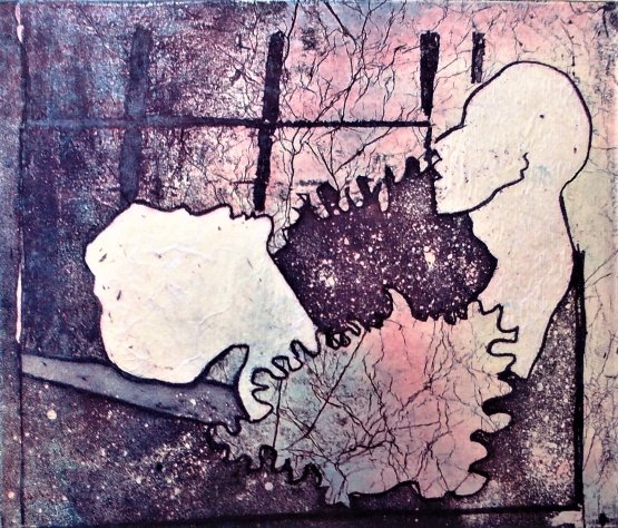 Ceramolle e acquatinta con inserto in seta - 25 x 35 - 2011
